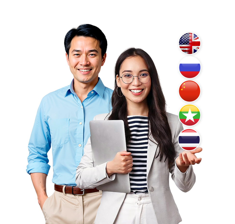 我们提供中文、英文、俄语、缅语与泰语服务代表,为您提供支持。